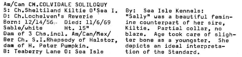 Sire: Am Ch Sheltieland Kiltie O' Sea Isle