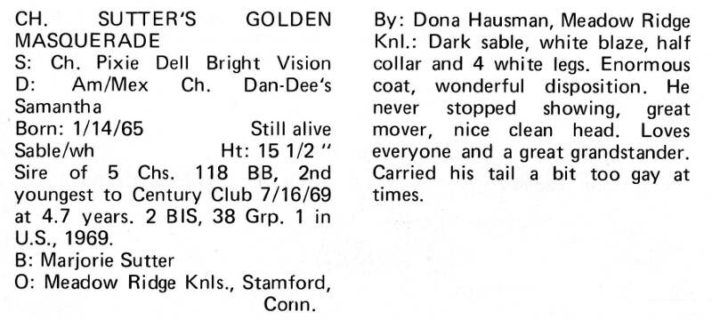 2 BIS, 122 Best of Breed, between 1966 and 1970, 39 Group placements.