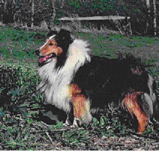 Of his littermates he was the precocious one. ALWAYS getting out, there wasn't a pen that could keep him in. He always left the other pups and followed me everywhere. Needless to say he was my favorite all time dog. He was very intelligent and at home would do all of the events in CDX, but hated the shows. He did reluctantly get his C.D. and then I let him stay home. He didn't like people...not afraid of them but didn't want to make up with them. If I had known he would end up being the sire of the # 1 Sheltie in the nation I would have taken more photos of him.:>)